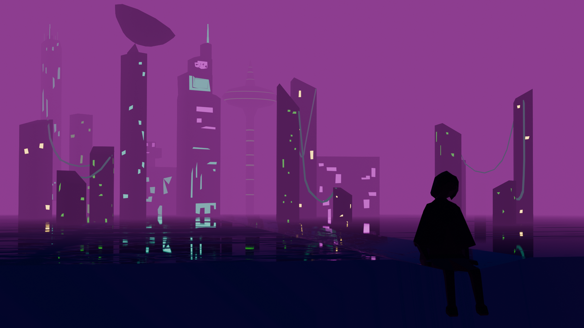 I though the harder would be to learn how to do the mist, and glow and reflections, but I spent hours with my pc freezing and not comprehending what was wrong with my first try at a building, when I duplicated it ten times. I think it was because I put more vertices that my pc can handle so I re did it completly, but the last image is still a screenshot of it because it took me so much time !